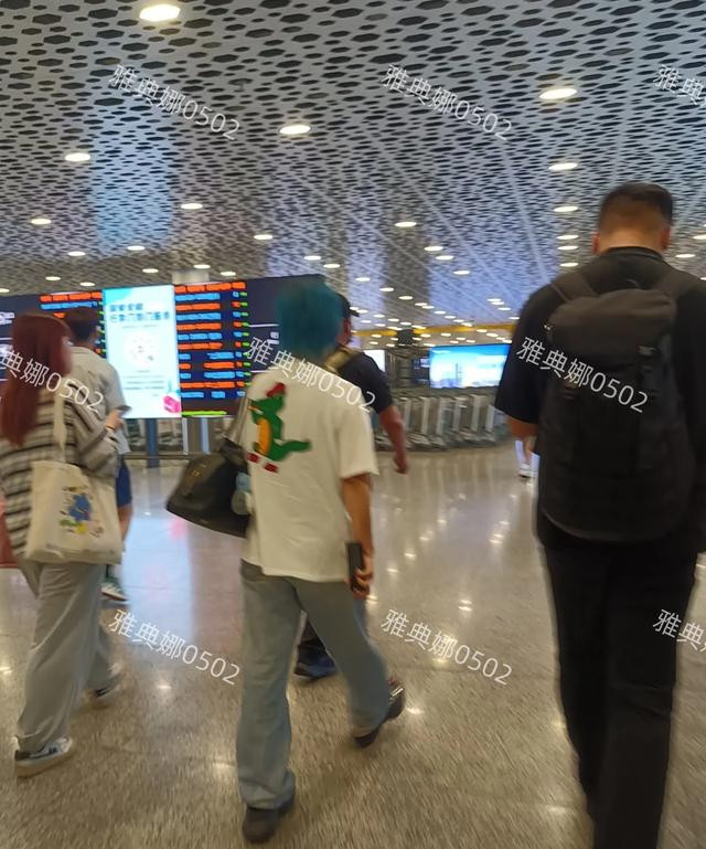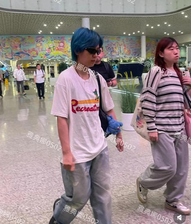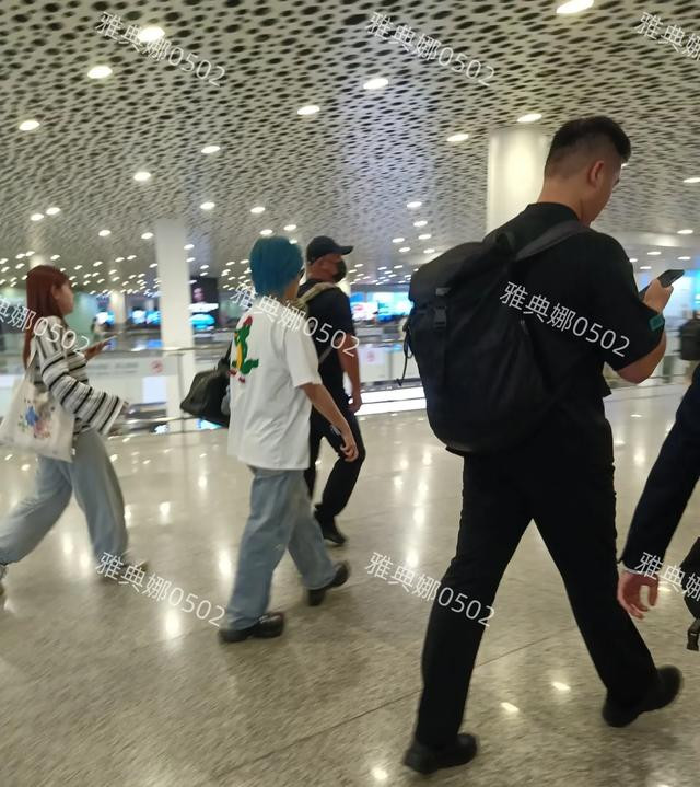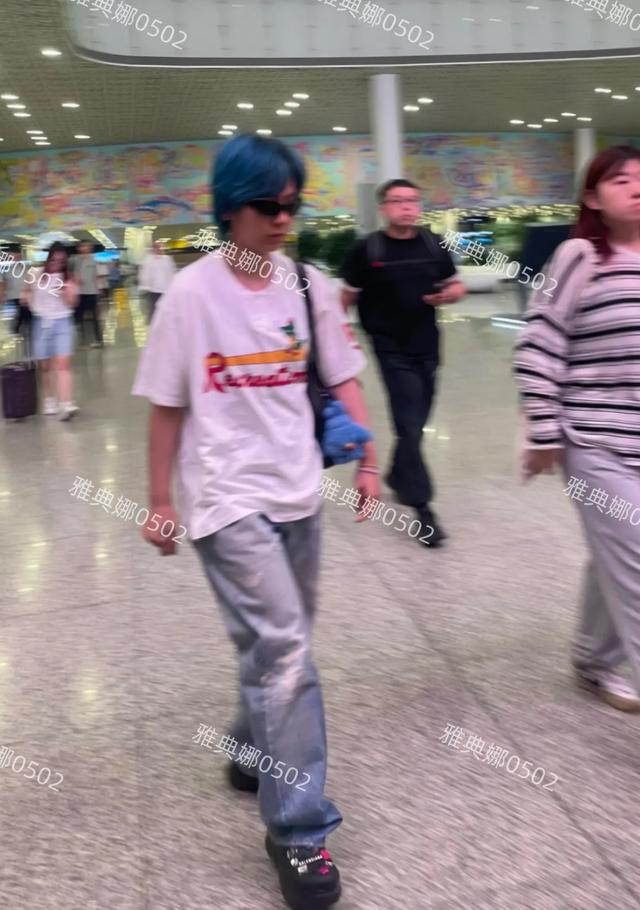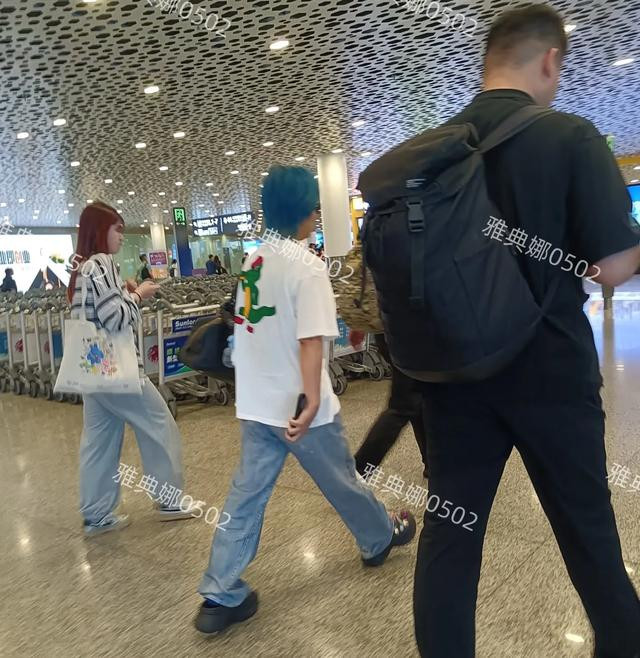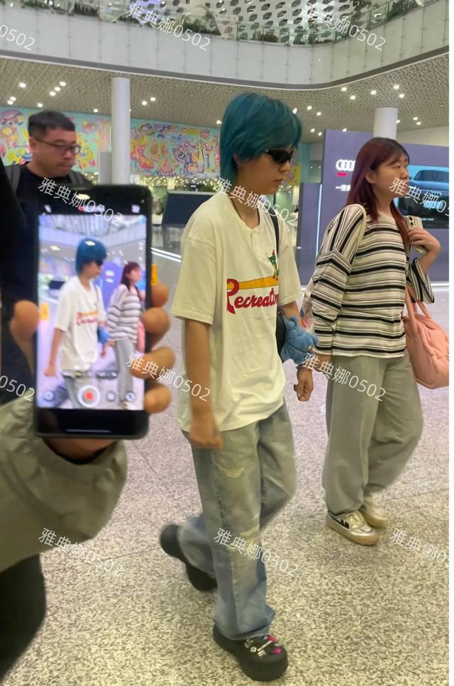 深圳机场遇到歌手周笔畅了,她的打扮一如既往的中性,头发很短染成了很鲜艳的蓝色,T恤牛仔裤配上大头鞋,这个装扮很不日常舞台感很强,她戴了一副很有个性的墨镜,走路大步流星酷劲儿十足。